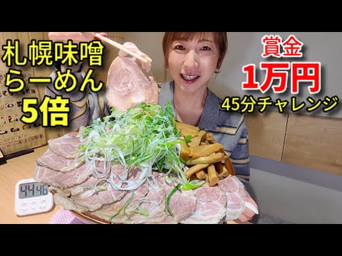 【大食い】賞金1万円!札幌味噌ラーメン5倍45分完飲完食チャレンジ!【三宅智子】