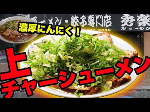 大阪・守口市のラーメン餃子専門店「秀楽」で、にんにく増し増しの上チャーシューメンと中華そば定食を本気で爆食!永ちゃんゆかりのニンニクラーメンを、腹パンになるまで楽しむスタミナ回です。